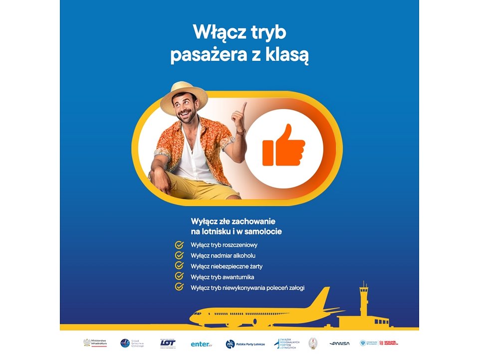 Urząd Lotnictwa Cywilnego zainicjował ogólnopolską kampanię informacyjno-edukacyjną „Włącz tryb pasażera z klasą”, której celem jest podniesienie świadomości podróżnych w zakresie konsekwencji nieodpowiednich zachowań, promowanie uprzejmości oraz odpowiedzialności podczas lotu, a także ograniczenie przypadków naruszania bezpieczeństwa i komfortu w trakcie podróży. Szczególną rolę w kampanii odgrywają Polskie Porty Lotnicze S.A., które aktywnie wspierają inicjatywę poprzez współorganizowanie akcji i udostępnianie materiałów edukacyjnych zarówno na Lotnisku Chopina, jak i w swoich kanałach komunikacji.