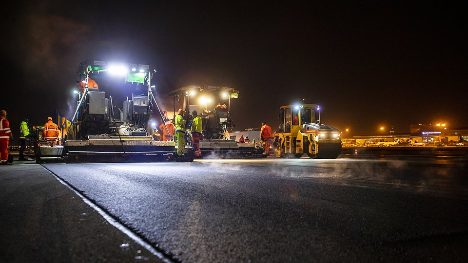 Ostatnim etapem było wałowanie i zagęszczanie nowej nawierzchni, po czym służby techniczne przystąpiły do szczegółowego czyszczenia i inspekcji rejonu prac. Wszystko po to, aby z pierwszymi porannymi przylotami każdy samolot mógł bezpiecznie wylądować na w pełni sprawnym skrzyżowaniu dróg startowych.